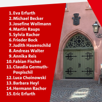 Die Bewerbungsrede der Bürgermeisterkandidatin Eva Erfurth war geprägt von großem Elan und Optimismus und fand einhellig Beifall. Erfurth will Obernburg wieder zu einem Schmuckstück machen und das große Potenzial der Stadt nutzen. Sie zeichnet das Bild einer offenen, lebendigen, toleranten und wirtschaftlich erfolgreichen Stadt. Probleme in Obernburg und Eisenbach wie bei der Ärzteversorgung oder dem Ladenleerstand sollen zielgerichtet in Angriff genommen und gelöst werden. Erfurth will das soziale Miteinander in vielfältiger Form stärken, etwa durch die Unterstützung der Eisenbacher Initiative des Rathausschoppens. Darüber hinaus will sie die junge Generation in einem Jugendbeirat aktiv beteiligen. Erfurth, die als Controllerin im Bereich Finanzen des Landkreises Miltenberg Verantwortung trägt, sprach vom Können und Machen. Sie hat für den Landkreis unter anderem die Wirtschaftsförderung aufgebaut, das Existenzgründerzentrum mit entwickelt und das Controlling in der Verwaltung eingeführt. Erfurth trägt seit über 20 Jahren Führungsverantwortung und ist darüber hinaus als Gesundheitslotsin ausgebildet. Obernburg und Eisenbach sollen für sie ein „Ort der Chancen und des Wohlfühlens für Alle“ werden. Für diese Ziele begeistern sich auch die Kandidatinnen und Kandidaten für den Stadtrat. Sie bieten ein vielfältiges Spektrum an beruflicher und ehrenamtlicher Erfahrung. Die Kandidierenden, sieben Frauen und acht Männer im Alter von 18 bis 64 Jahren, sind bereits in Vereinen, Kirchen und verschiedenen Gruppierungen für die Stadt aktiv und wollen sich nun auch im Stadtrat engagieren. Sie sind sich einig, dass es kein „Weiter so“ in der Stadtpolitik geben soll und ein frischer Wind ins Rathaus einziehen muss.